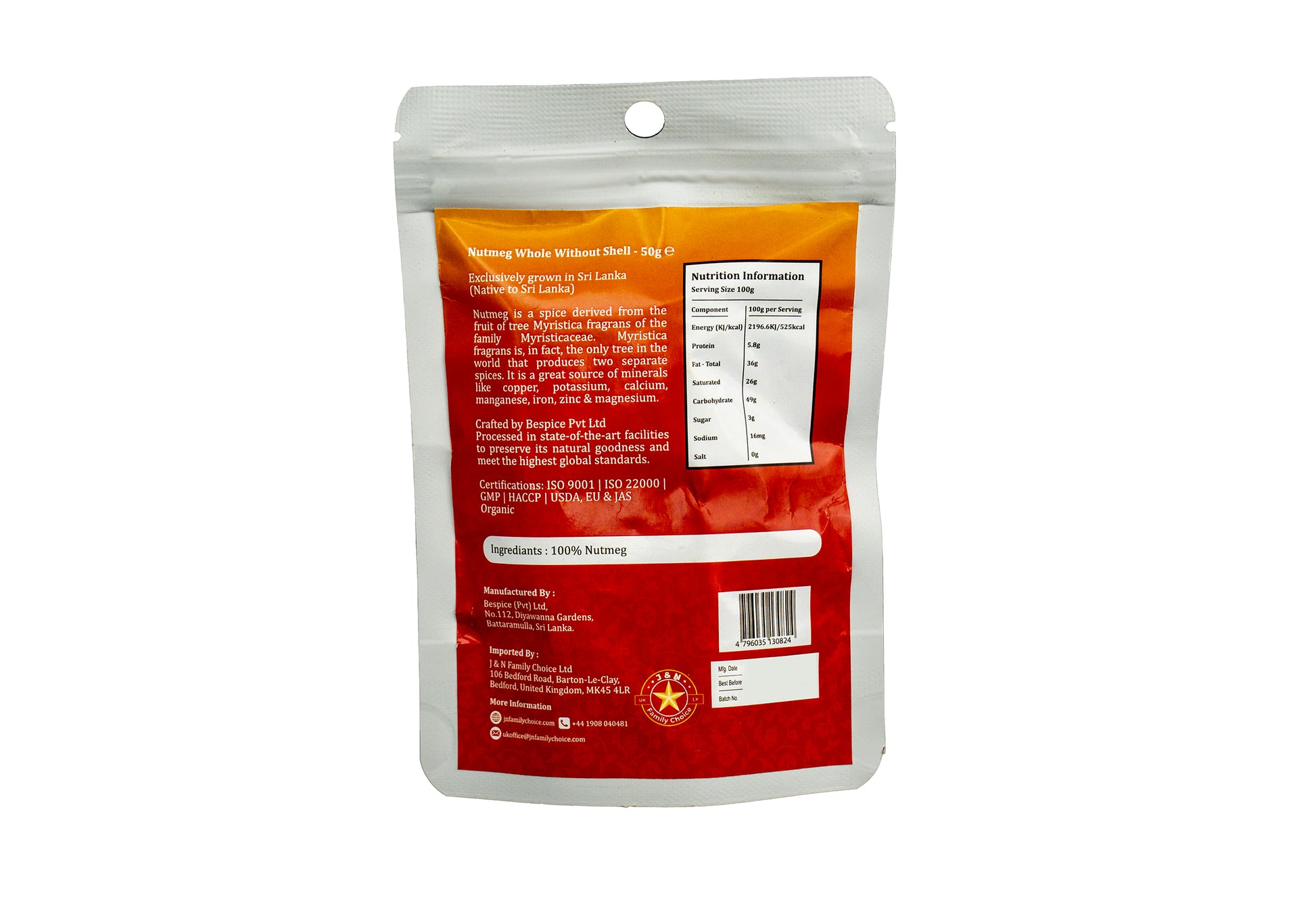 Bring rich Sri Lankan aroma to your kitchen with Nutmeg Whole – Without Shell—ready to use and perfect for grating fresh whenever you need it. Whole nutmeg gives a stronger, fresher flavour than pre-ground, adding a warm, slightly sweet depth to both savoury dishes and desserts.