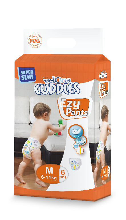 Premium Ezy Pants – M (8 pcs): Convenient small pack pull-up diaper pants with a soft breathable inner layer, stretchy waistband for a comfy secure fit, and a quick-absorb core with leak-guard cuffs to help prevent leaks. Easy to pull on and tear-off sides for quick changes—ideal for travel, outings, or emergencies.